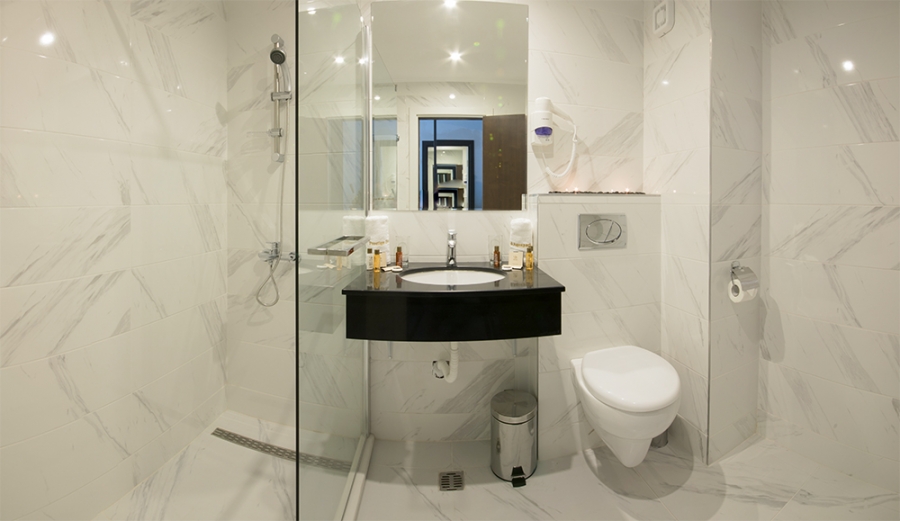 - Баня с вана или душ-кабина , сешоар, козметични принадлежности