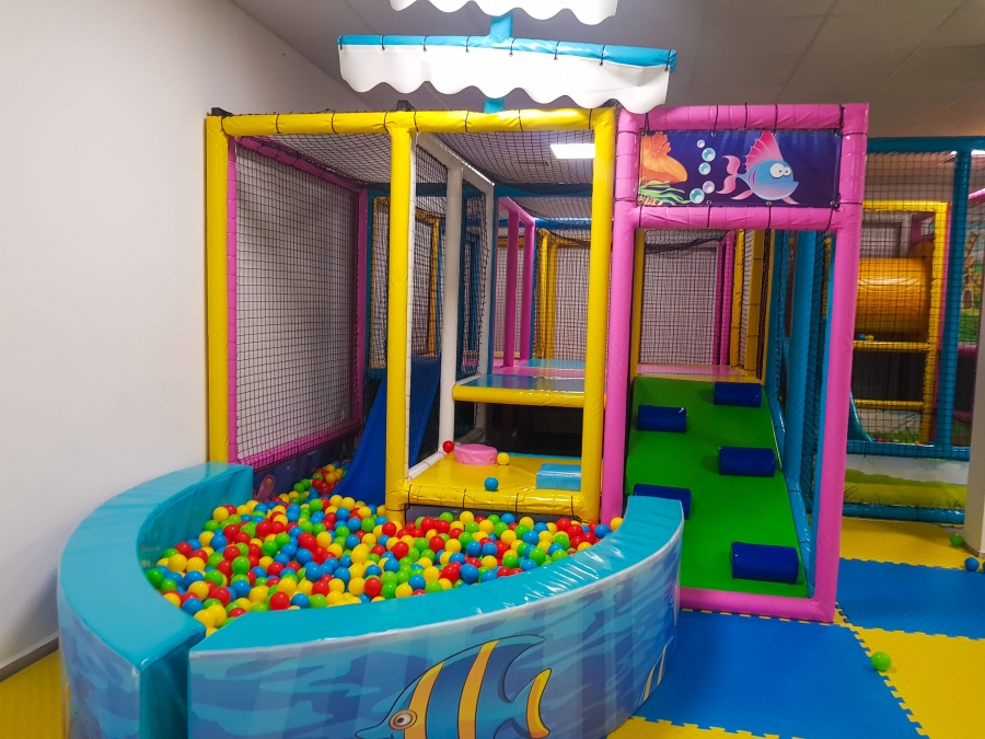 Оборудван е с катерушки и пързалка с любимите на всички деца топчета. Това е място което непременно ще стане любимо на вашите деца по време на почивката им при нас.