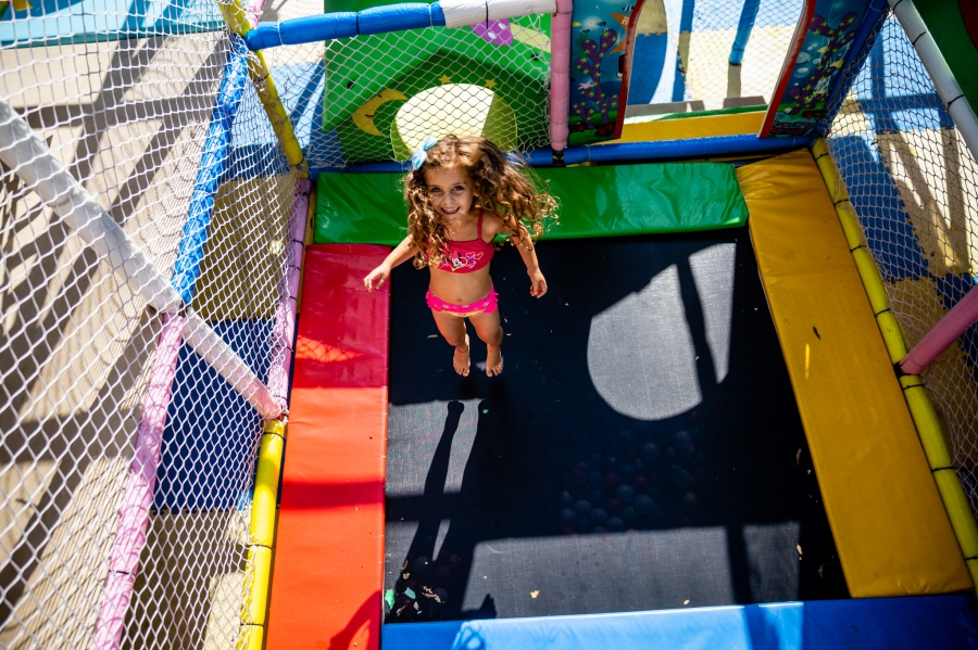 На задния басейн на Престиж Делукс Хотел Аквапарк Клуб, се намира нашият батут кът, любим на деца и родители. Там децата могат да скачат до насита и да изразходват тяхната енергия, докато родителите се наслаждават на слънцето и събират тен край басейна.